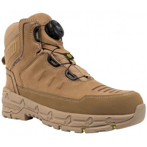 Apache Stonehenge — built tough for demanding environments. Featuring a stone full grain leather upper and a waterproof, breathable bootie to keep you dry on site.