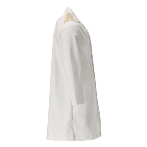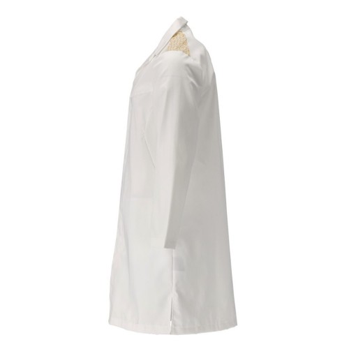 Fastening with hidden press studs. Press stud fastening at cuffs. Metal press studs. Slits at the sides. Inner pocket. Prepared for insertion of personalized label, HF and UHF chip. Colour labelling for all sizes. The product tolerates industrial washing.