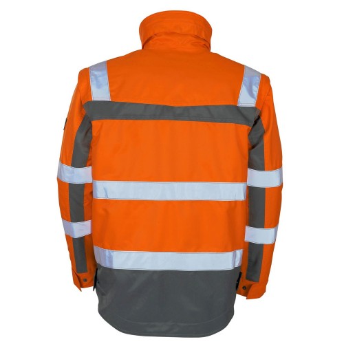 - Quilted lining is a jacket in itself, approved to EN ISO 20471, with ribbed collar and removable sleeves.